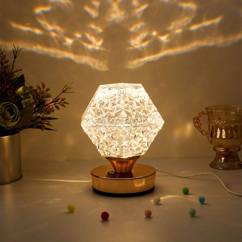 Crystal LED Table Lamp Small Waist Projector Touch Romantic Atmosphere Light USB LED Night Light for Bedroom Home Decor